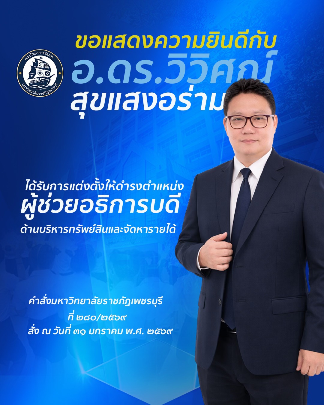 ขอแสดงตวามยินดีกับอาจารย์ ดร.วิวิศณ์ สุขแสงอร่าม