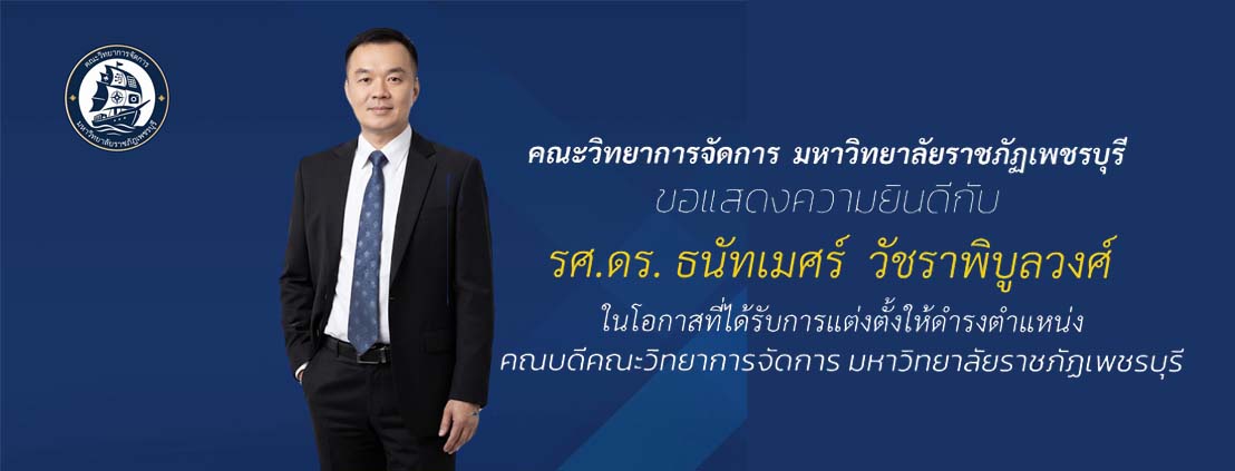 คณะวิทยาการจัดการ มหาวิทยาลัยราชภัฏเพชรบุรีขอแสดงความยินดีกับรศ.ดร.ธนัทเมศร์ วัชราพิบูลวงศ์ในโอกาสที่ได้รับการแต่งตั้งให้ดำรงตำแหน่งคณบดีคณะวิทยาการจัดการ มหาวิทยาลัยราชภัฏเพชรบุรี