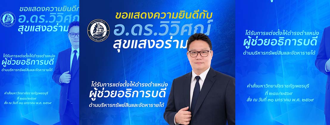คณะวิทยาการจัดการ ขอแสดงตวามยินดีกับ อาจารย์ ดร.วิวิศณ์ สุขแสงอร่าม ได้รับการแต่งตั้งให้ดำรงตำแหน่ง “ผู้ช่วยอธิการบดี”ด้านบริหารทรัพย์สินและจัดหารายได้...